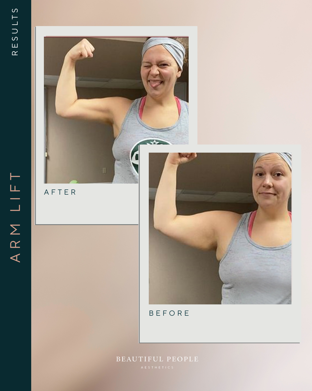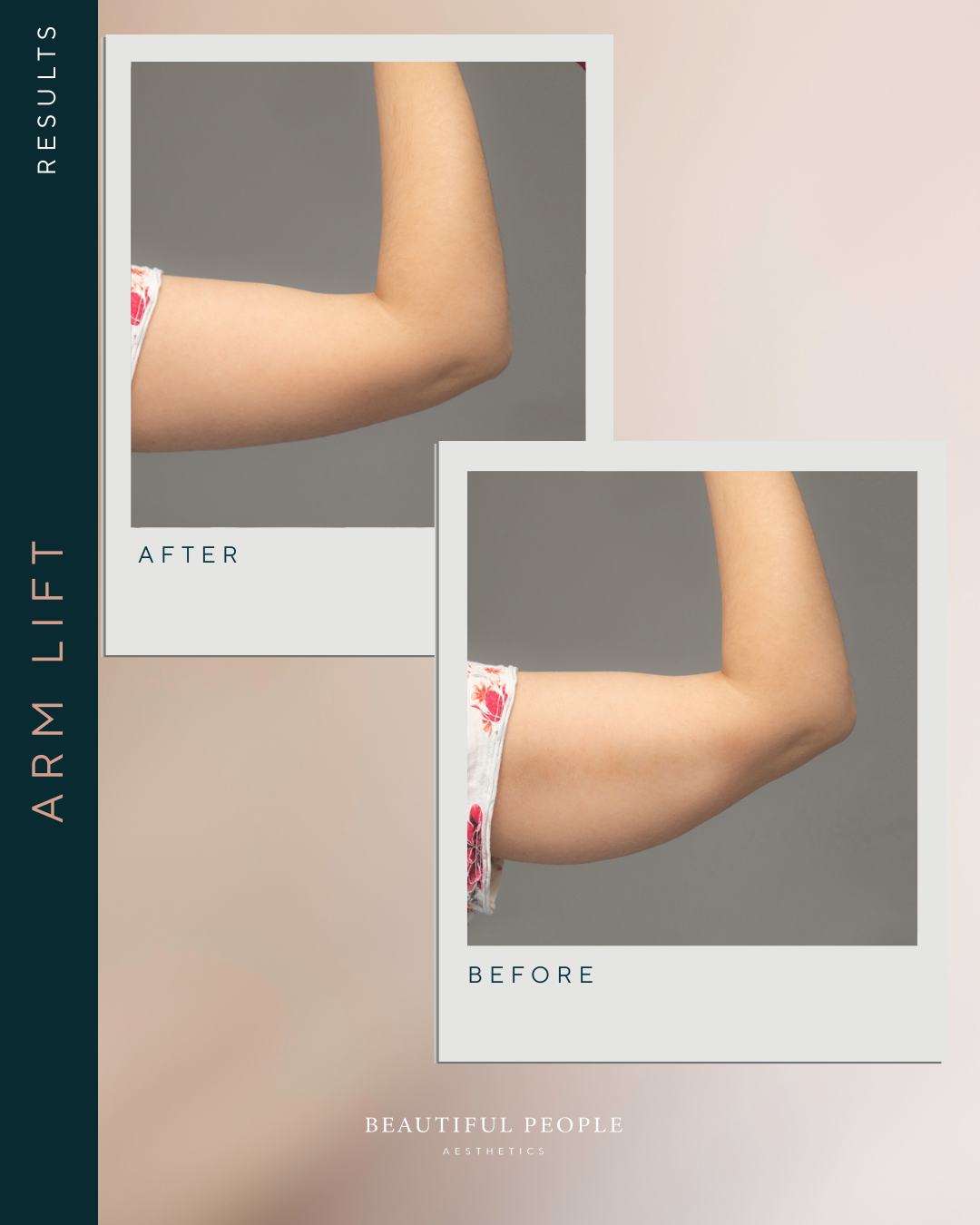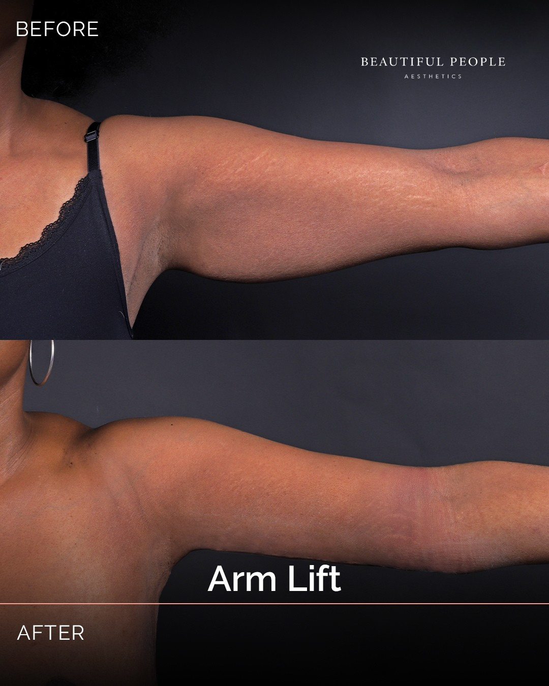 - Excess skin and, where required, fat are removed from the upper arms