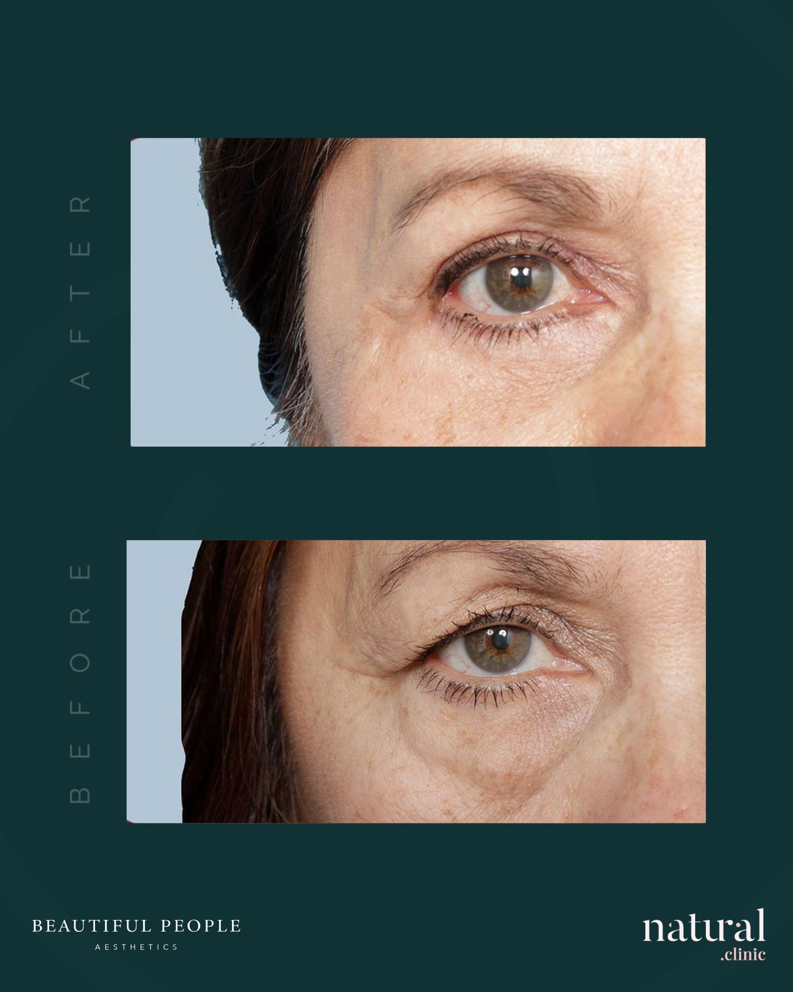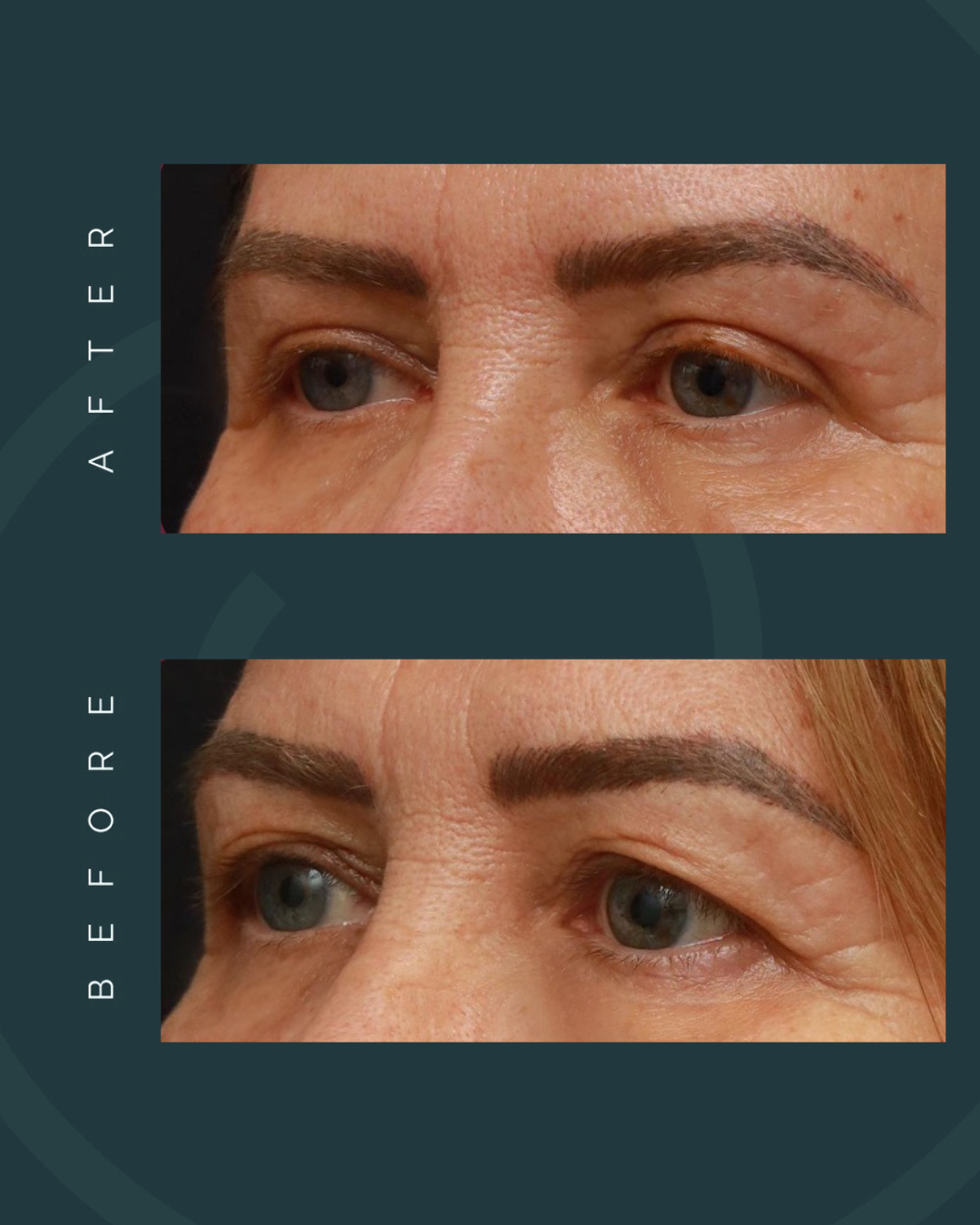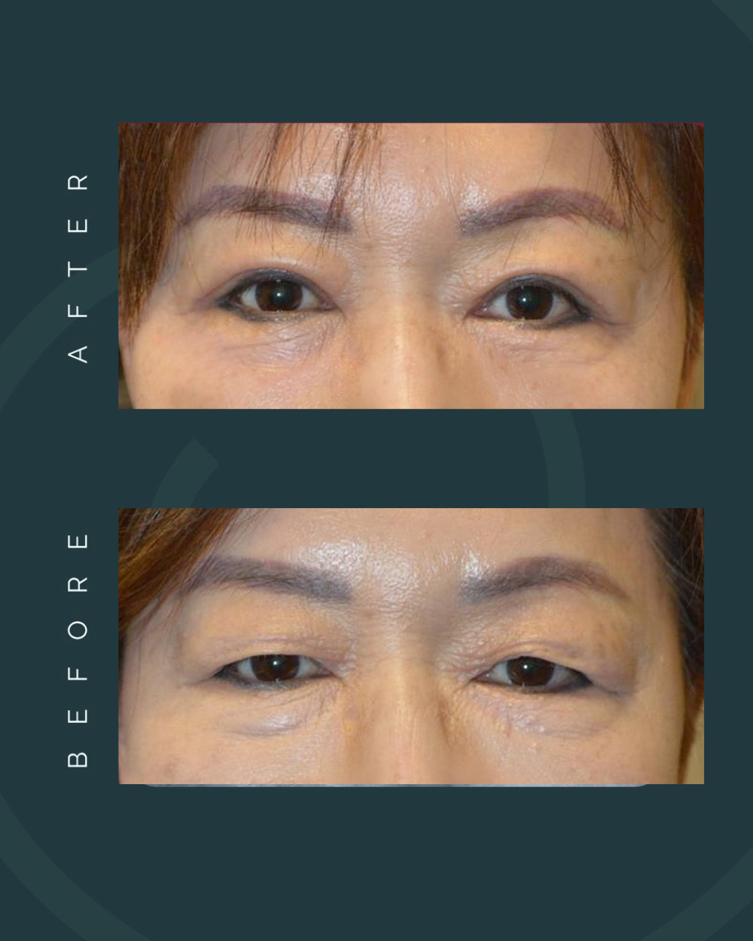 Brighter, more refreshed eye appearance. Reduction of puffiness, bags, and sagging skin. Smoother, firmer skin under the eyes. Natural rejuvenation of the upper and lower eyelids.