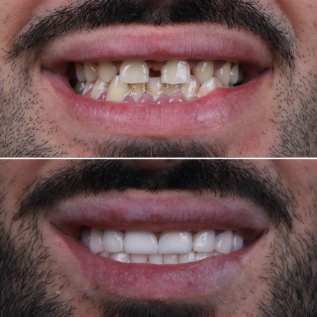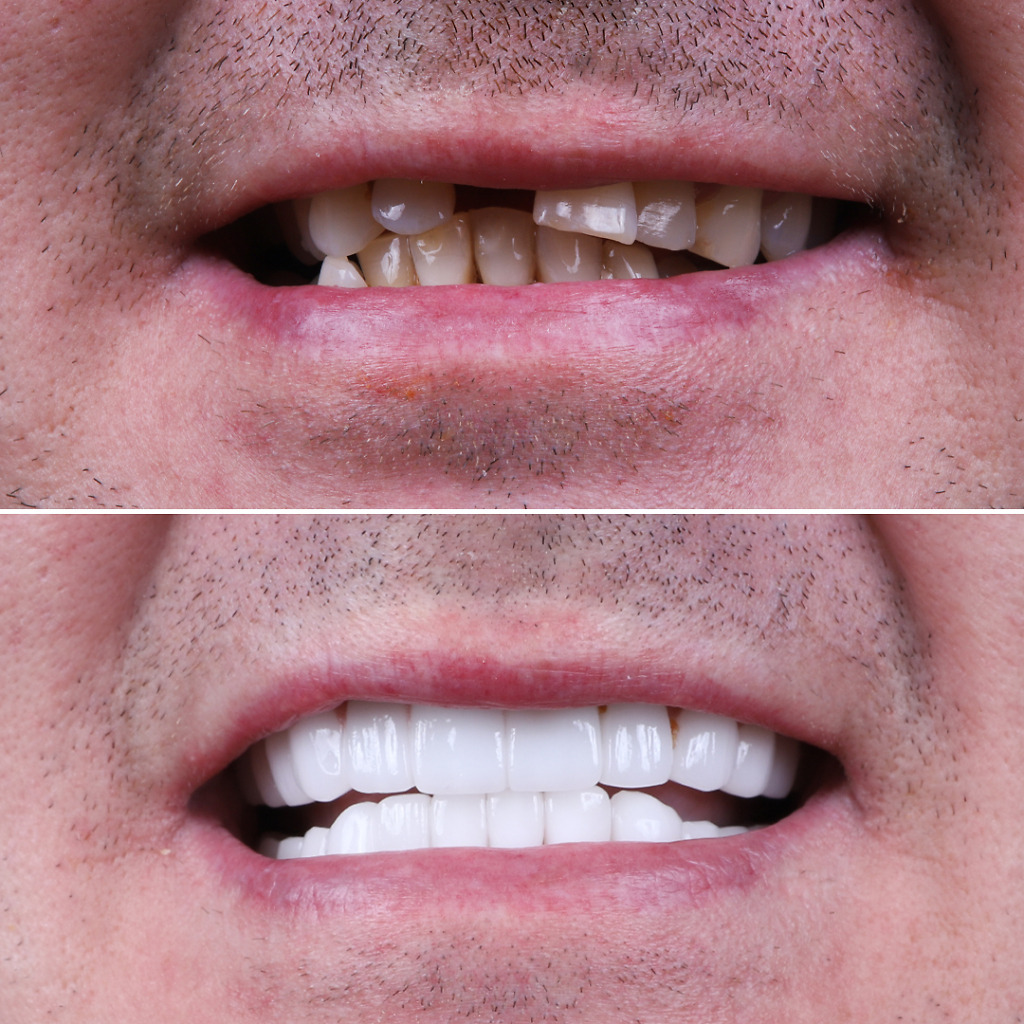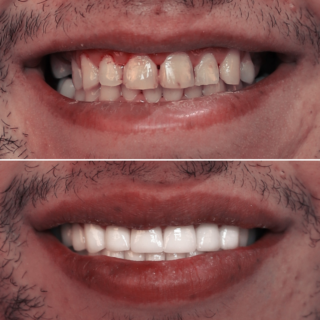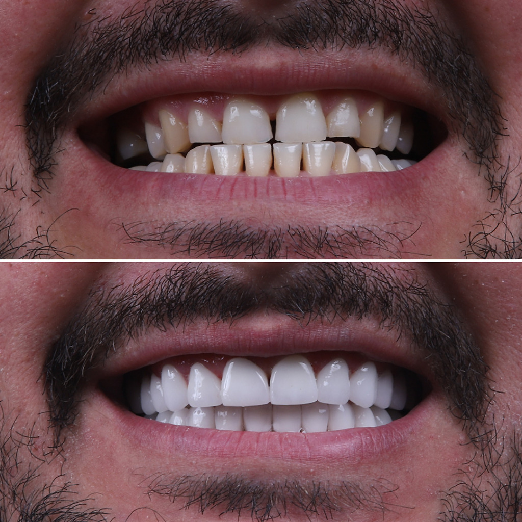 The treatment usually involves a combination of teeth whitening, teeth veneers, dental crowns and/or dental implants. Results include improving facial harmony and solving all jaw and teeth issues in the long-term.