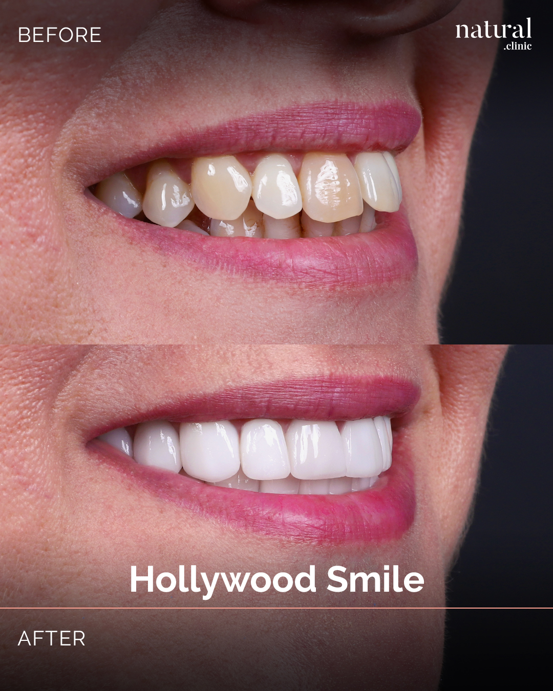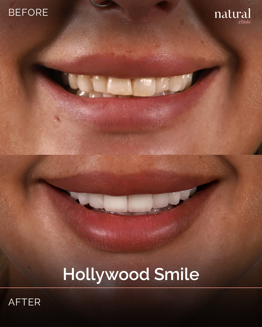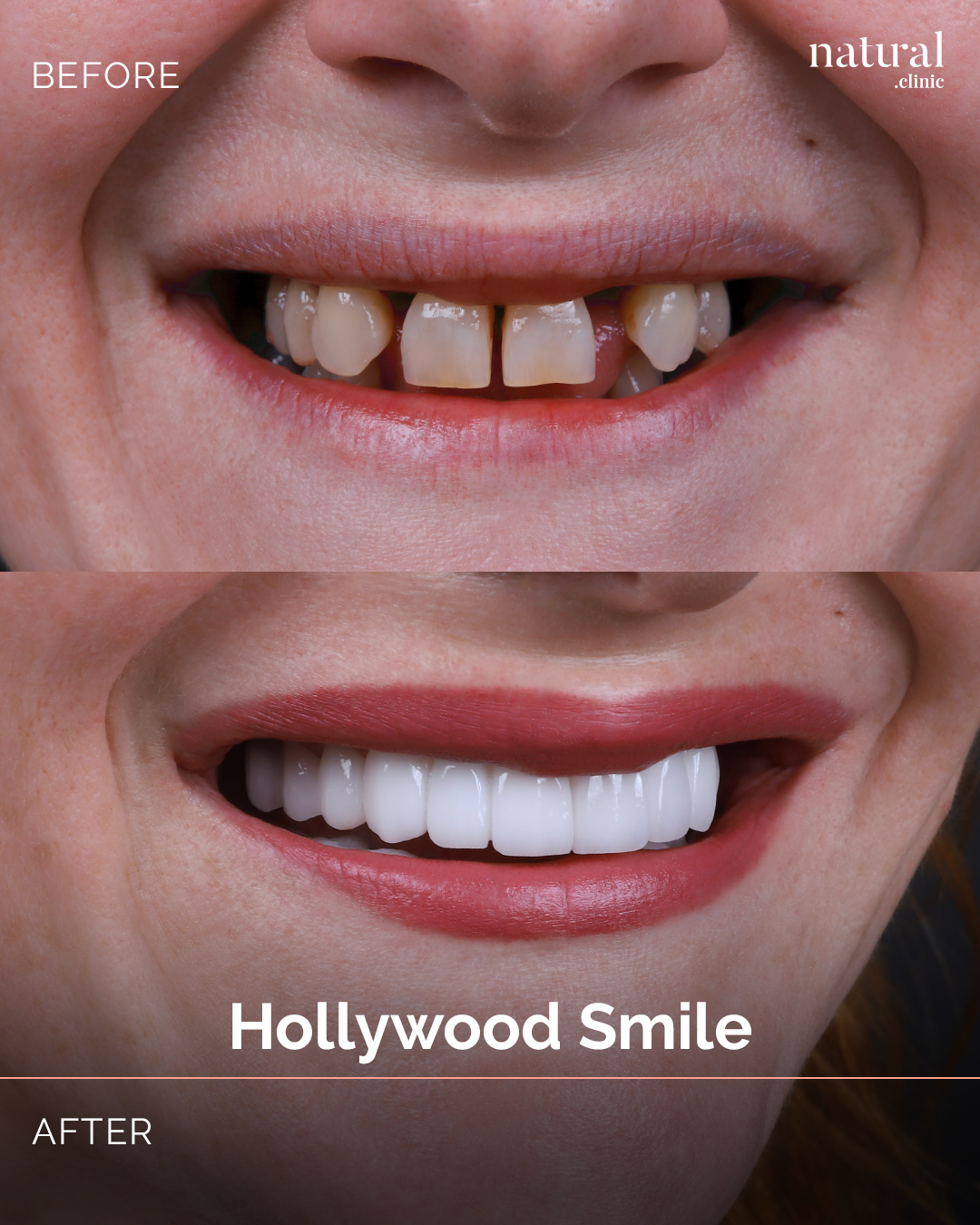 The Hollywood Smile procedure at Natural Clinic is tailored to achieve natural-looking results that enhance your unique beauty. Our skilled professionals ensure a smile that complements your features.